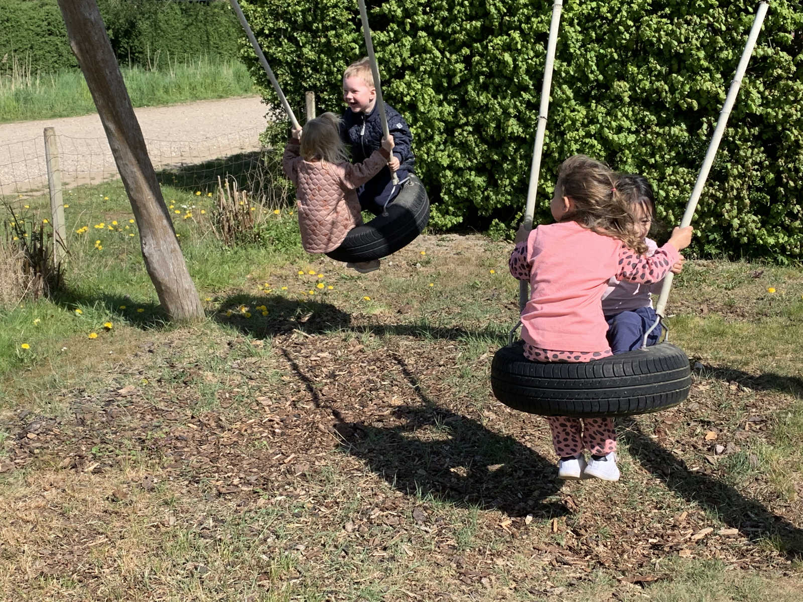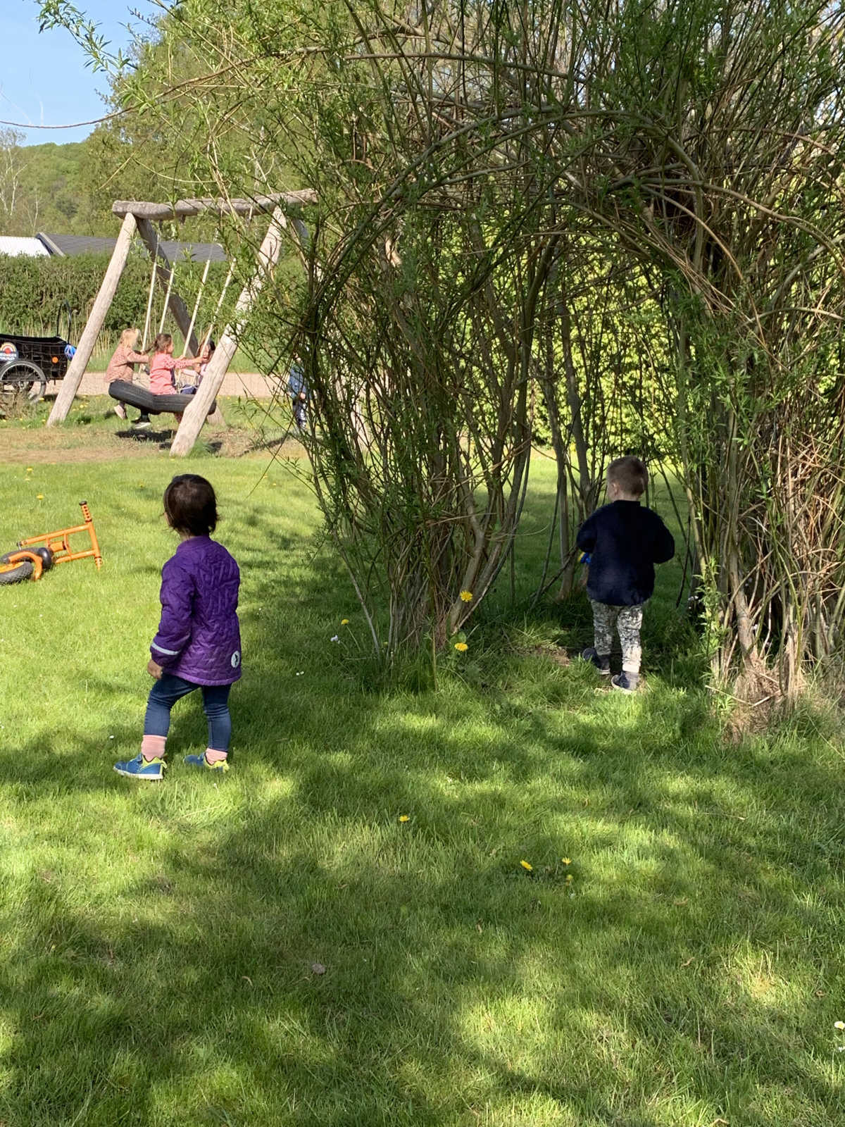 Særligt har vi glæde af kolonihaven i foråret og sommeren, hvor den store grund og det bløde græs nydes og danner rammen for leg, udeliv og feriestemning. Vi tager på cykeltur til haven med børnene og oplever årstidernes skiften.